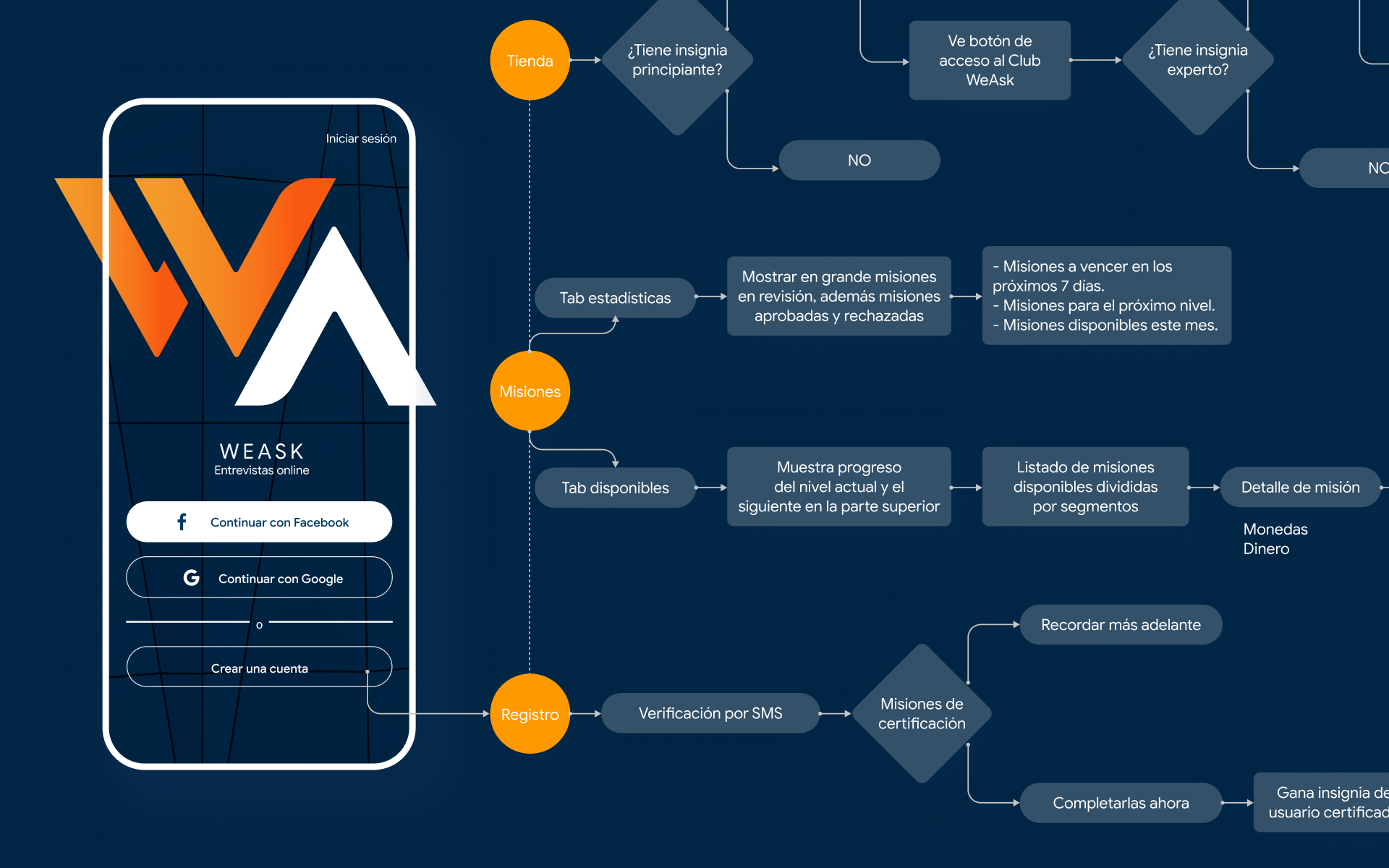 WeAsk is a collaborative retail management application designed for retail location owners and managers to provide detailed information about their products by completing various missions. For every mission completed, users earn money or points redeemable for numerous benefits, creating a system that drives accurate, timely data collection through a gamified and rewarding experience.